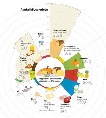 ‘We moeten drastisch anders gaan eten: minder suiker, minder vet en zuivel, minder vlees vooral. Alleen dan zullen we erin slagen de aarde leefbaar te houden en in 2050 tien miljard wereldbewoners van voldoende gezond en duurzaam voedsel te voorzien.’ (Volkskrant, 2019).